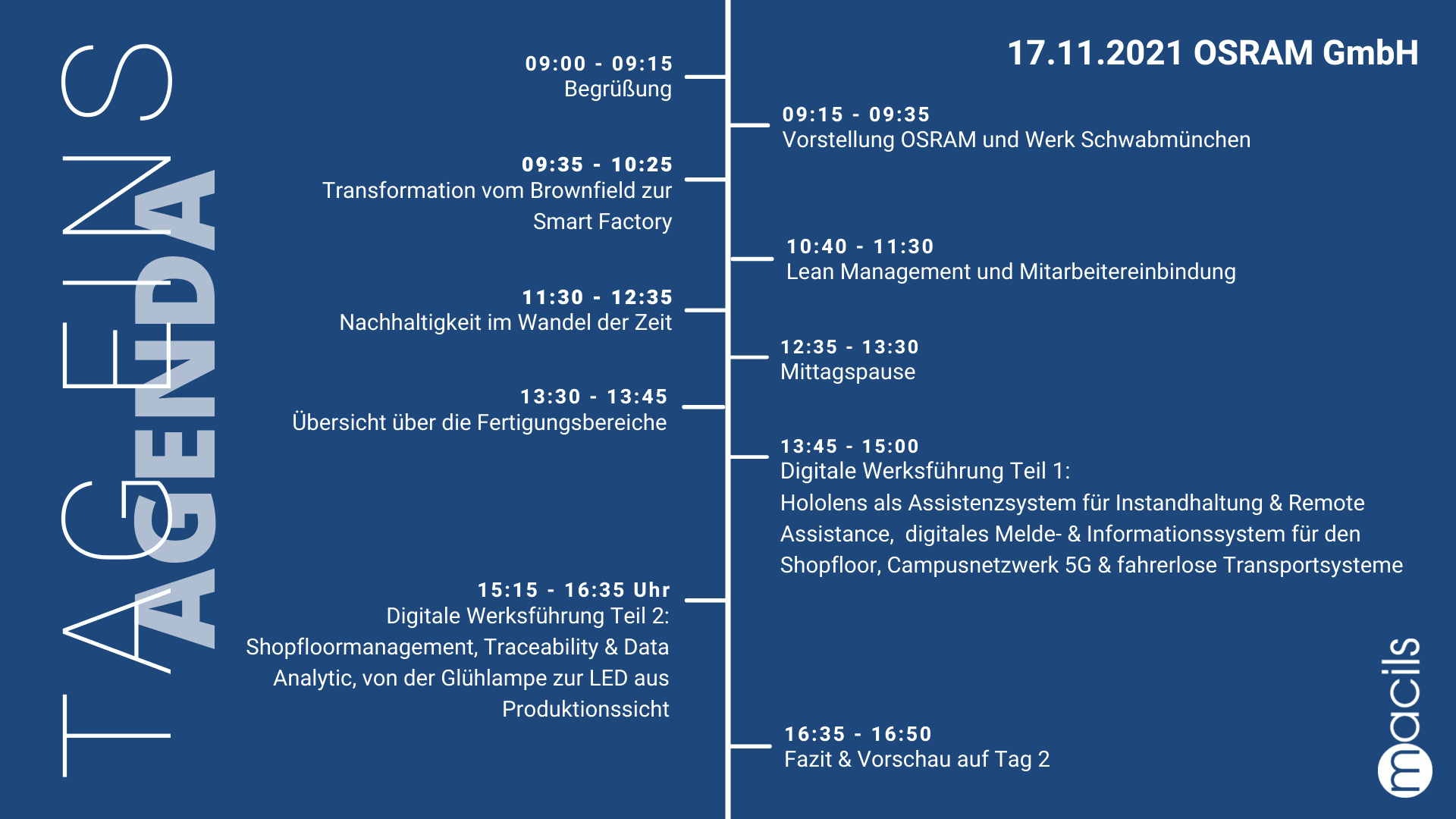 Wie schafft ein 60 Jahre altes Werk die Transformation ins hier und heute? Das OSRAM Werk setzt hierzu auf schlanke Prozesse, eine Kultur des Miteinanders und auf den Einsatz fortschrittlicher IOT-Technologien. Aus unserer Sicht ist das Werk stellvertretend für viele Fabriken am Standort Deutschland und zeigt, dass die Transformation aus einem Brownfield heraus gelingen kann. Erleben Sie aus erster Hand,